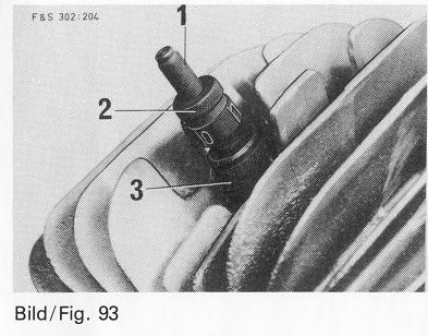 Ebenso Elektrodenabstand der Zündkerze (0,4 + 0,1 mm) überprüfen. (Bei Bosch W 2 AS (W 310 S 1 S)
