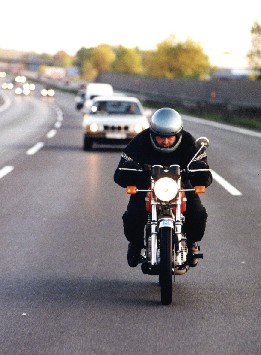 rauf ging. Der jeweilige Fahrer duckte sich so gut als möglich hinter dem Tankrucksack, um möglichst