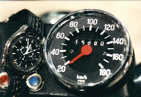 | km-Stand und Uhr bei Abfahrt |